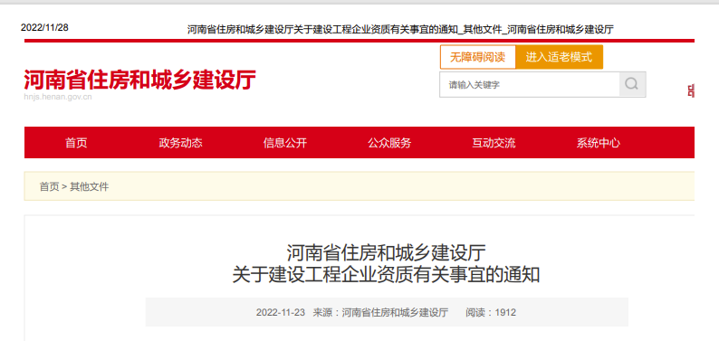 河南省住房和城鄉(xiāng)建設(shè)廳 關(guān)于建設(shè)工程企業(yè)資質(zhì)有關(guān)事宜的通知